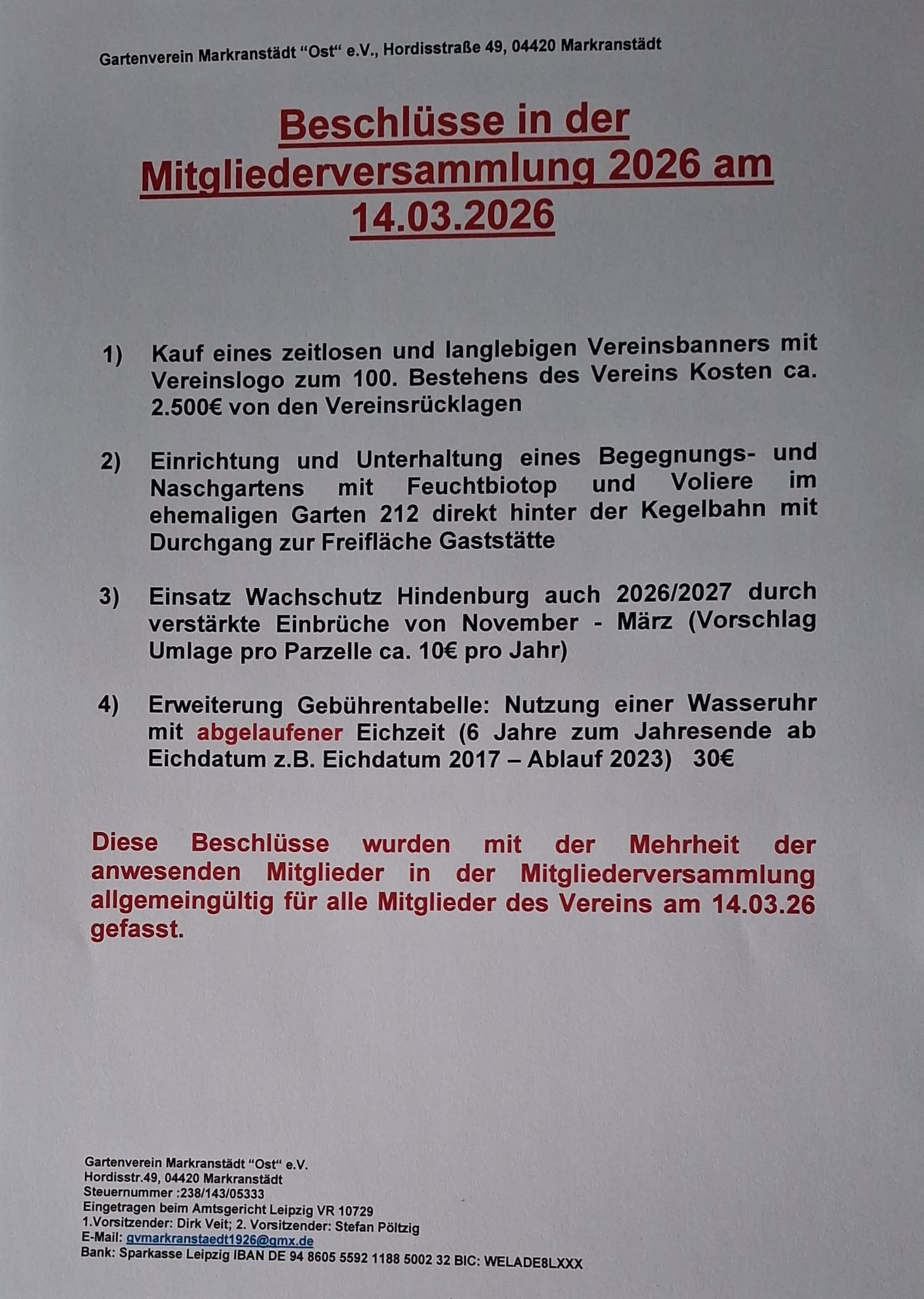 Beschlüsse der Mitgliederversammlungen